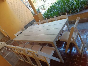 Contamos con un extenso catálogo de sillas y mesas, desde opciones elegantes y modernas hasta diseños clásicos. Todo nuestro mobiliario está en perfecto estado y listo para ser utilizado.